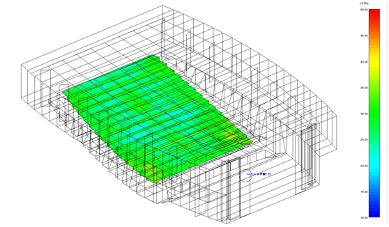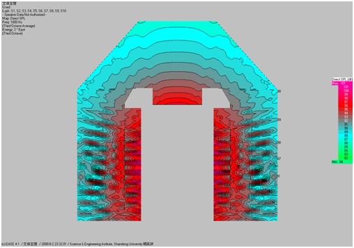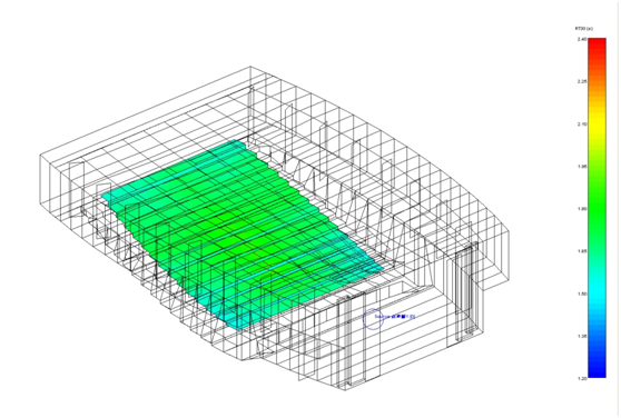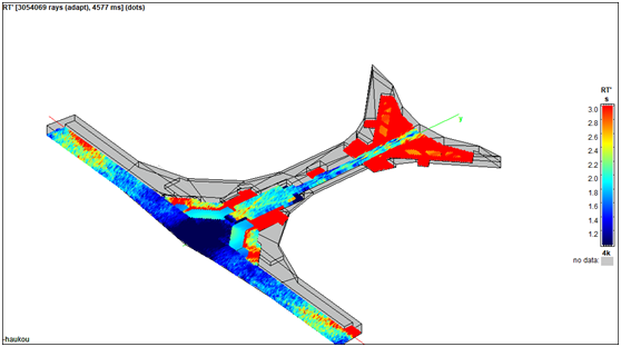模拟显示,中频500Hz混响时间95%以上座席区为1.7-1.9s,达到设计要求。