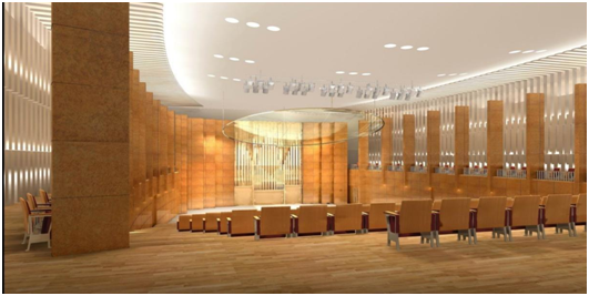 飞机外形的交通枢纽站的整体声学设计,包含建筑声学设计、电声设计、噪声(交通噪声及机电系统噪声)振动控制设计。