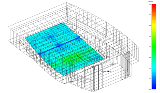 图2 音乐厅观众厅明晰度指标( C80平均 =-1.8dB)